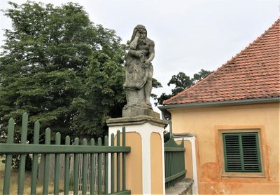 Alegorická socha Leden v ohradě zámecké zahrady ve Veltrusech, statue in Veltrusy, Czech Republic