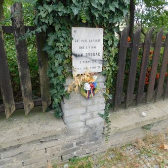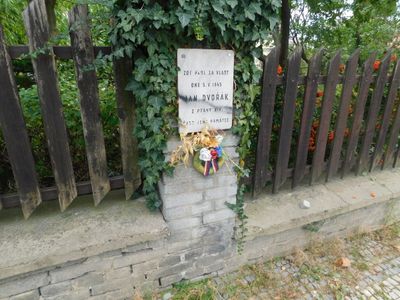 Pamětní deska Jana Dvořáka na plotu domu Vlašimská 1846/14 na Vinohradech, pamětní deska v Praze