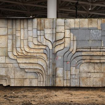 Concrete relief on the railing of the Dornych shopping center