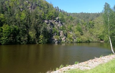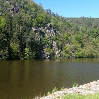 Kořenská skála, rock at Kořensko Reservoir near the village of Neznašov, South Bohemian Region, Czechia