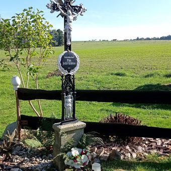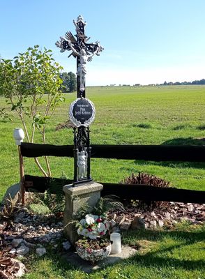 Wayside cross, small religious monument in Čeřejov, South Bohemian Region, Czechia