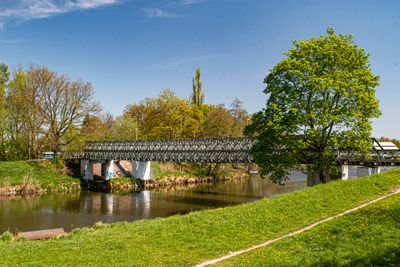 The Klapák Bridge extends 45.7 meters across the Orlice River, connecting the districts of Malšovice and Slezské Předměstí in Hradec Králové.