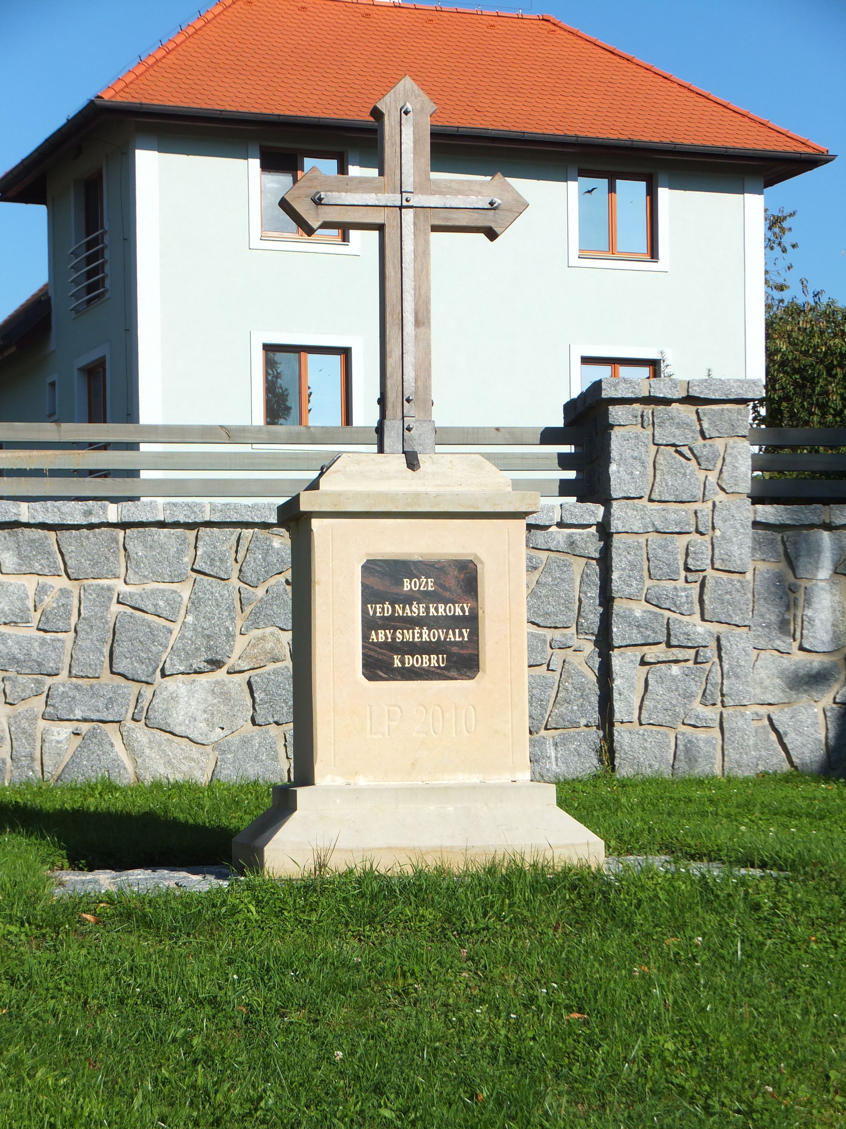 Kříž u autobusové zastávky Dvorce západně od Třeboně