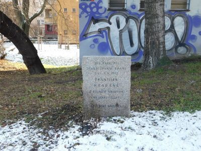 Pomník Františka Habáně v Ruské ulici ve Vršovicích, pomník padlým v Praze