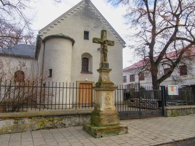 Boží muka ve Slatinicích naproti Obecnímu úřadu