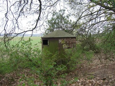 Bývalý kryt pozorovatele, dnes sklad plev, na okraji lesíka východně od Malého Přítočna