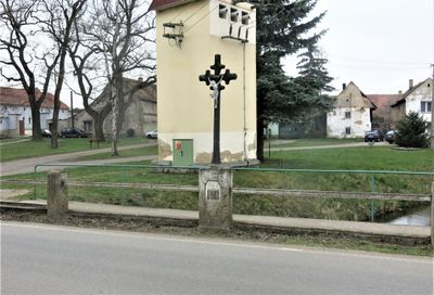 Kříž na mostě přes potok v Černuci, pamětní kříž v obci Černuc v okrese Kladno