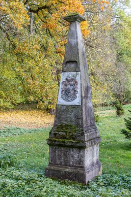Sloup se znakem Colloredo-Mansfeld u myslivny Mochov, sloup v obci České Meziříčí v okrese Rychnov nad Kněžnou