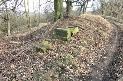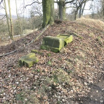 Podstavec s ulomeným křížem u polní cesty západně od osady Hliněná