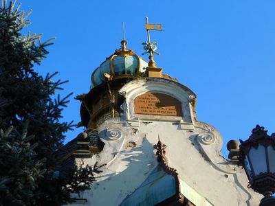 Pamětní deska na východním štítu Hanavského pavilonu na Letné