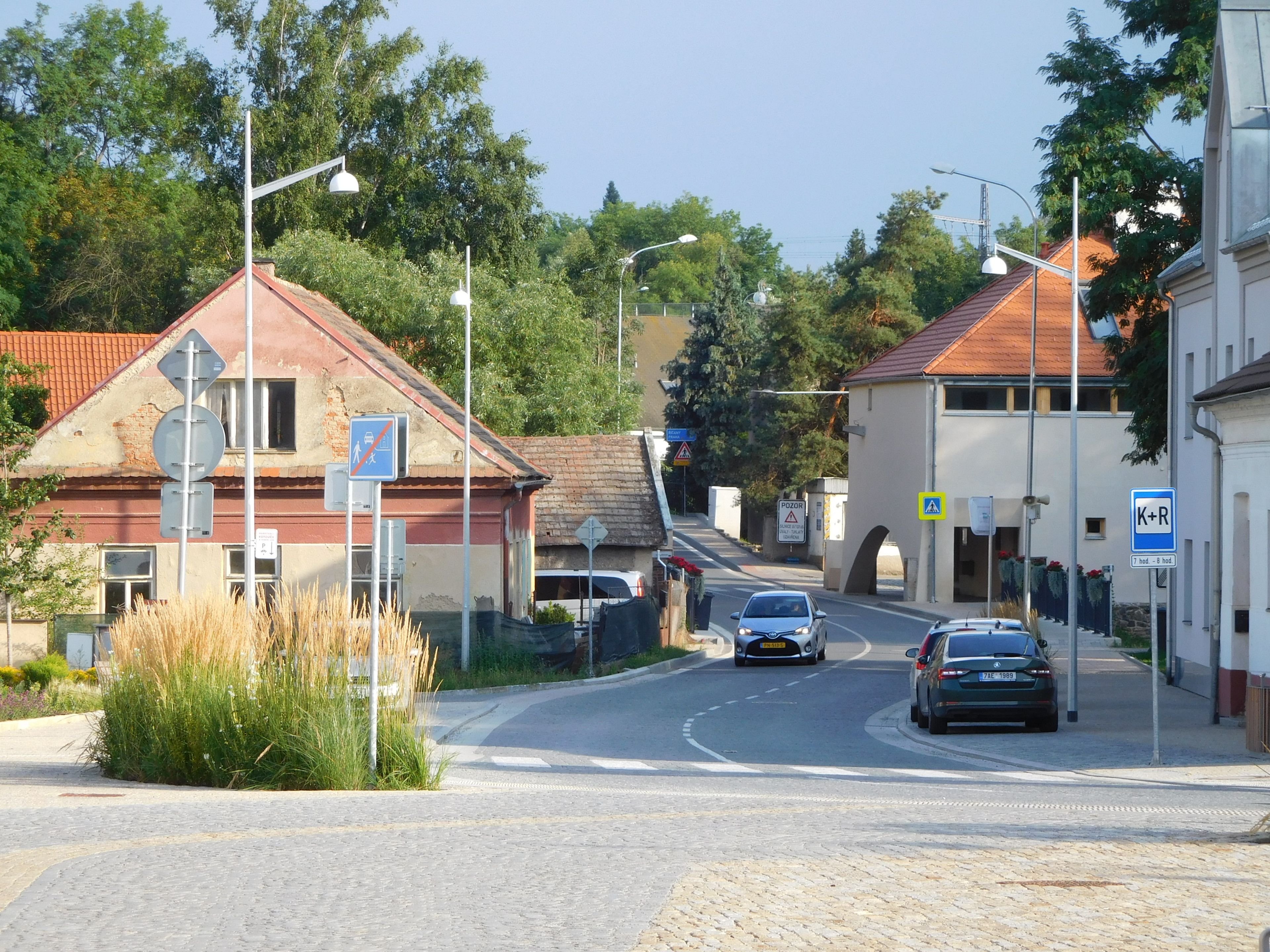 Lávka přes Výmolu pod kostelem Zvěstování Panny Marie v Úvalech
