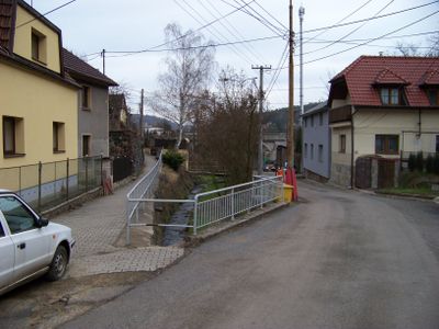 Most přes Podmoráňský potok na návsi v Úholičkách