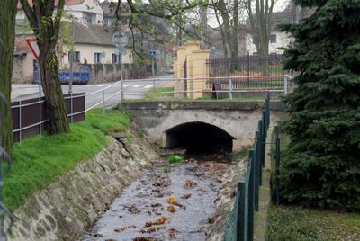 Most Roztocké ulice přes Podmoráňský potok na návsi v Úholičkách, bridge in Úholičky, Czech Republic