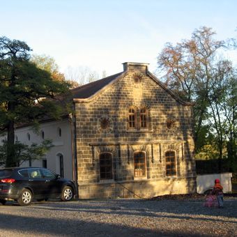 Socha sv. Jana Nepomuckého v areálu pivovaru v Dolních Počernicích