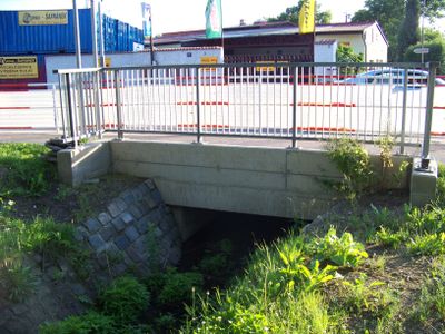 Most Pražské ulice přes Měcholupský potok, bridge in Hostivař, Czech Republic