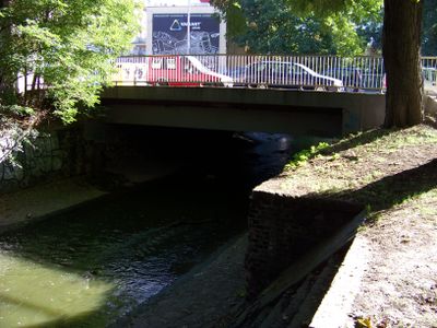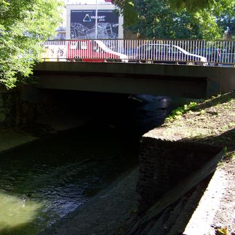 Bridge of U vršovického nádraží street over the Botič, bridge in Vršovice, Czech Republic