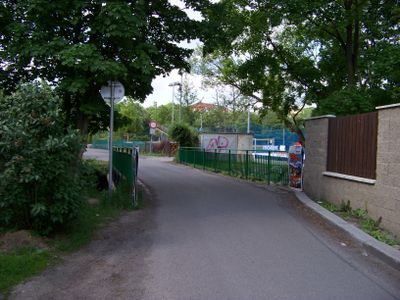 Západní lávka přes Botič ve sportovním areálu Hamr