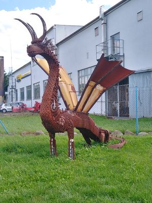 Socha ležícího muže v parku u zámku v Doudlebech nad Orlicí