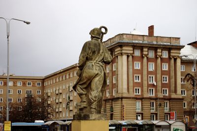 This life-sized sandstone figure represents the industrial heritage of Ostrava, reflecting the influence of foundry work in the region's development.