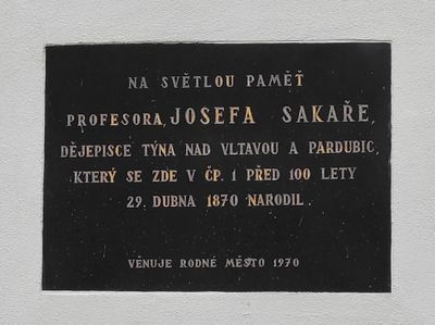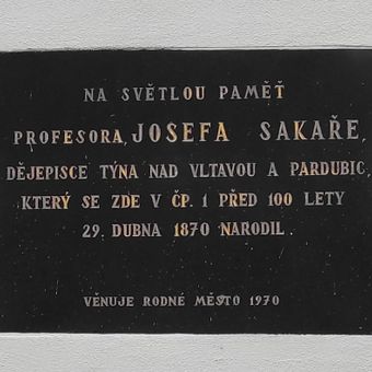 Pamětní deska Josefa Sakaře, pamětní deska v Týně nad Vltavou