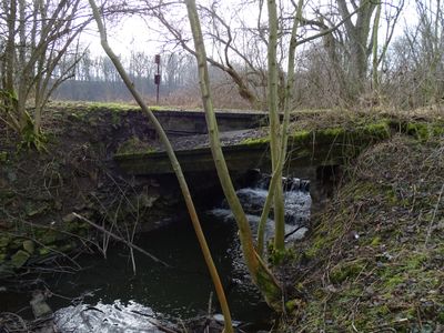 Můstek přes Říčanský potok v uhříněveské oboře severně od Hraničního dubu, bridge in Uhříněves, Czech Republic