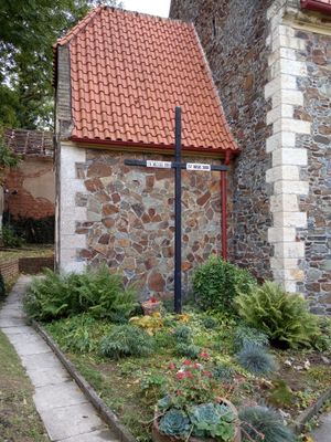 Mission cross at the Church of St. James in Petrovice, cross in Prague