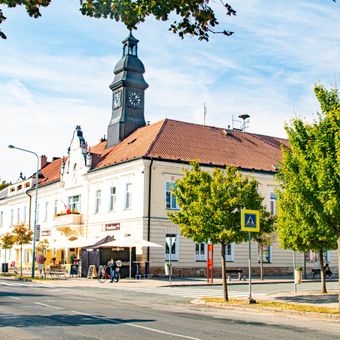 Pamětní deska Karla Kněžourka na domě 56 v Městci Králové