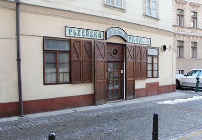 The beer hall attracted numerous artists and performers from nearby theaters, including Jan Werich, Jiří Voskovec, and Jaroslav Ježek during the early 20th century.