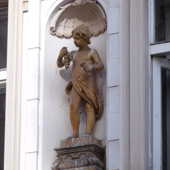 Sochy vpravo od štítu domu Staroměstské náměstí 7