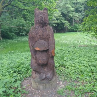 Dřevěná socha medvěda u Libníče, statue in Jelmo, Czech Republic