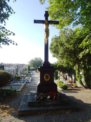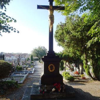 Centrální kříž na hřbitově ve Slavkově u Brna, kříž u cesty na území Slavkova u Brna