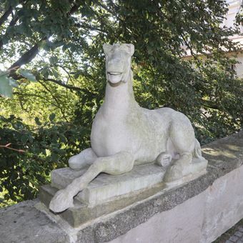 Socha koně vpravo na mostě zámku v Náměšti nad Oslavou