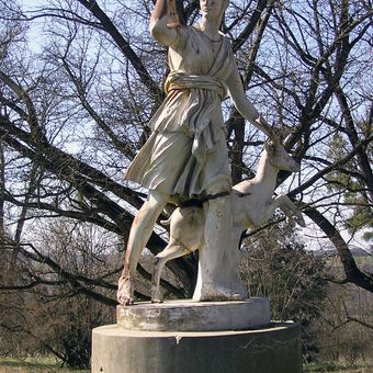 Socha Diany v zámeckém parku v Bojkovicích, statue in Bojkovice, Czech Republic