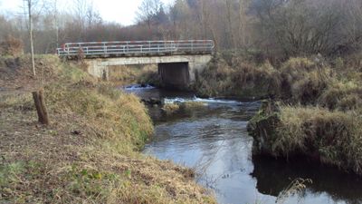 Podstavce a zbytky soch u pramene Tří svatých u Kamenického potoka