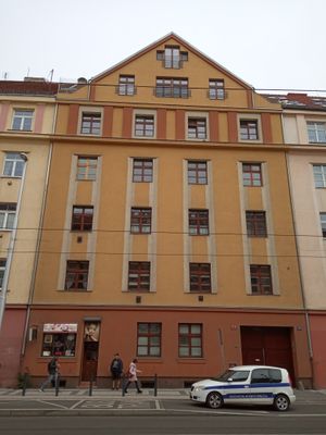 Pamětní deska obětem 2. světové války na domě V Háji 1243/35 v Holešovicích