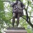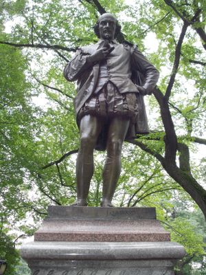 The Shakespeare statue stands on a decorated pedestal near the Mall's southern section, featuring the playwright in a contemplative pose with his right arm raised.
