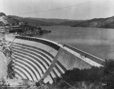 The City of San Diego constructed Barrett Dam between 1919 and 1923, following the acquisition of water infrastructure from Southern California Mountain Water Company in 1913.