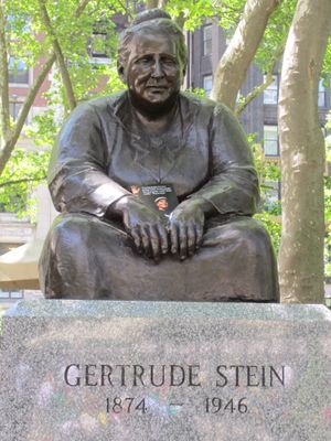 Gertrude Stein, Bronze historic site and statue in Bryant Park, Manhattan, US.