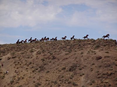 The steel horses represent the native legend of the Grandfather Spirit releasing wild ponies across the land as a symbol of freedom.