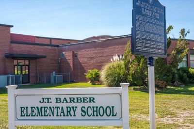 The J.T. Barber School features seven wings housing a cafeteria, library, gymnasium, auditorium, music room, and multiple educational spaces across 11 acres.