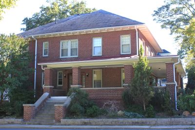 The building maintains its original dual-entrance design on the wraparound porch, reflecting specific architectural choices from the 1920s construction period.