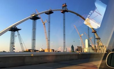 The bridge construction began in 2013 as part of the Dallas Horseshoe Project, a major transportation infrastructure development costing 798 million dollars.
