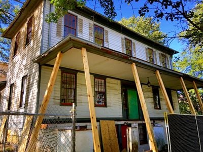In 1813, workers split the house into two sections and moved them apart to expand the main hall from six to eleven feet wide.