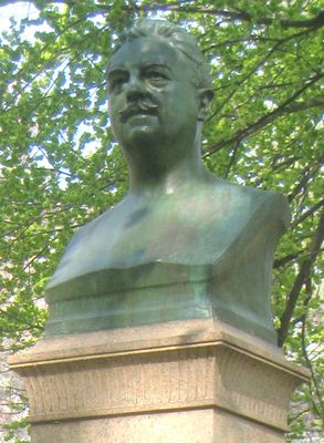 The bronze bust of Victor Herbert, created by sculptor Edmund Thomas Quinn, stands atop a granite pedestal near the Mall in Central Park.