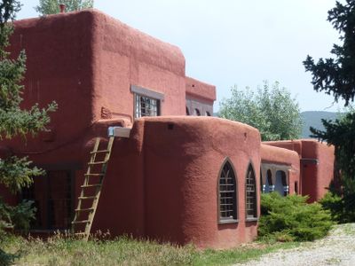 The house represents the intersection of Native American, European, and Asian influences in its design, reflecting the multicultural nature of Taos art colony.