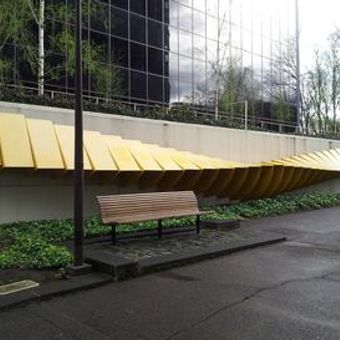 The installation represents Portland's dedication to combining functional architecture with artistic elements in public spaces, following specific Design Overlay requirements.