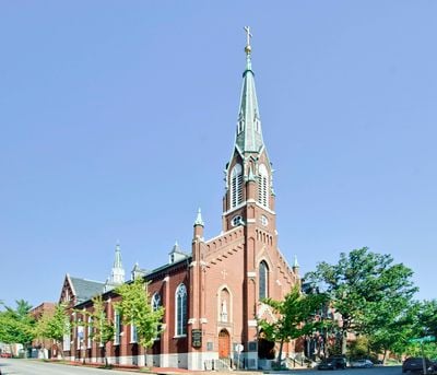 The St. John Nepomuk Parish Historic District includes a red brick Gothic-style church and six additional buildings at 1631 South 11th Street.