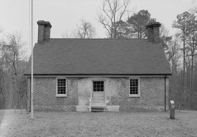 The Kiskiack House features a one-and-a-half story design with a gable roof and walls constructed in Flemish bond architectural style.