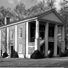 The three-bay brick structure features a temple-form design with a Doric order pedimented portico supported by four stuccoed columns on the front facade.