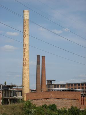 The facility includes a yellow brick chimney stack and maintains its original slow-burning construction design, characteristic of early 20th-century industrial architecture.